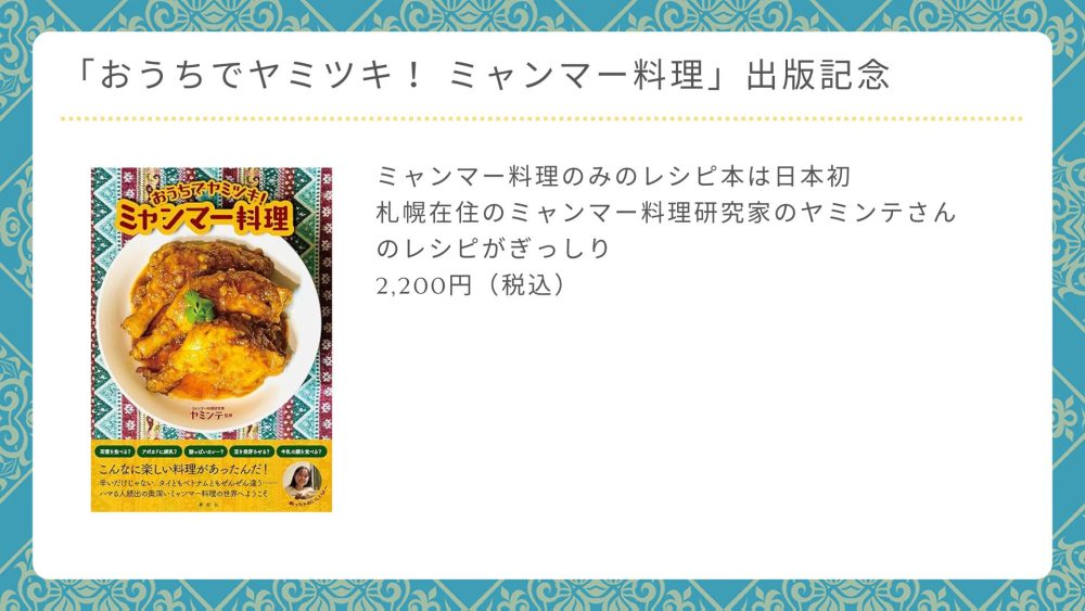 📚「おうちでヤミツキ!ミャンマー料理」(著・ヤミンテ、寿郎社)発売記念のコラボイベントです!