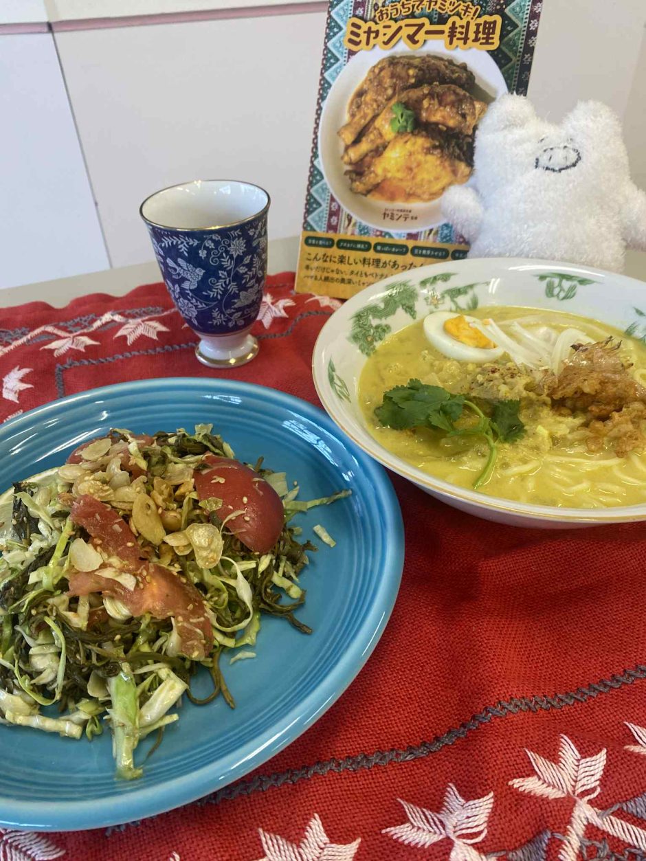 🍜ミャンマーのオンノカウスエ(ココナッツミルクラーメン)と🥗ラペットゥ(お茶の葉サラダ)を作ります。
